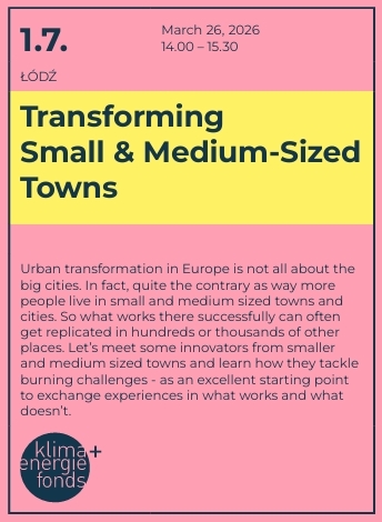 In cooperation with the Austrian National Climate & Energy Fund, this session, chaired by Eugene Quinn, will speak to various European towns, to hear about the challenges they face, from brain-drain to mobility and visibility. We expect to have speakers from Celje in Slovenia, and Lienz in East Tirol.